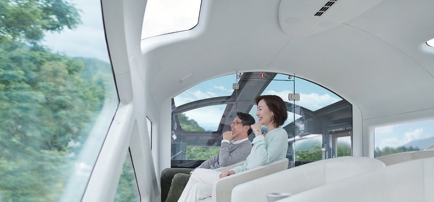 The Vision of Shinyu-Tanbo: Designed by Ken Okuyama, renowned for his work with luxury brands like Porsche and Ferrari, the champagne-gold train embodies the concept of Shinyu-Tanbo - a journey of the highest pleasure and discovery. The aesthetic is futuristic yet deeply rooted in Japanese tradition, featuring unique, geometric-cut windows and a clean, minimalist interior that emphasizes space and light.